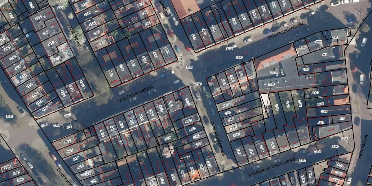 Drie Octoberstraat 12-A is gelegen op kadastraal perceel LDN01M3467. Deze kadastrale aanduiding is uniek en wordt gebruikt door het Kadaster om eigendomsrechten en andere zakelijke rechten vast te leggen. Het perceel maakt onderdeel uit van de kadastrale gemeente Leiden.