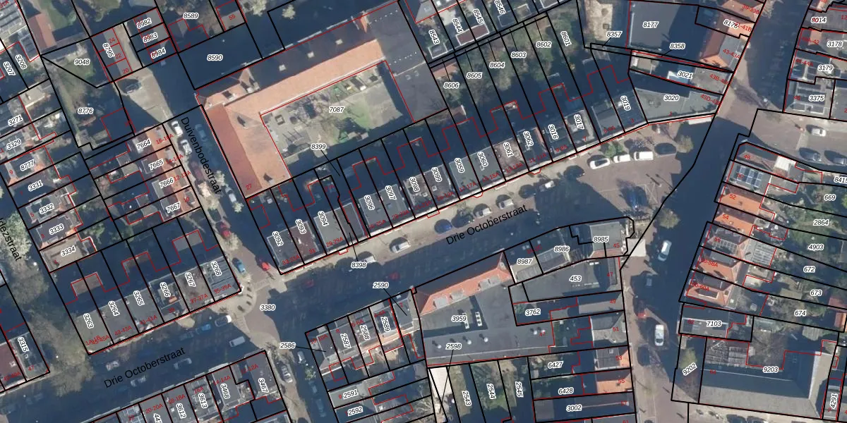 Het perceel waarop Drie Octoberstraat 21 staat heeft een oppervlakte van 119 m². Dit is een middelgroot perceel. De perceeloppervlakte wordt geregistreerd door het Kadaster. Gedetailleerde informatie over de maten van dit perceel kunt u vinden in het rapport Kadastrale kaart met maatvoering van Drie Octoberstraat 21.