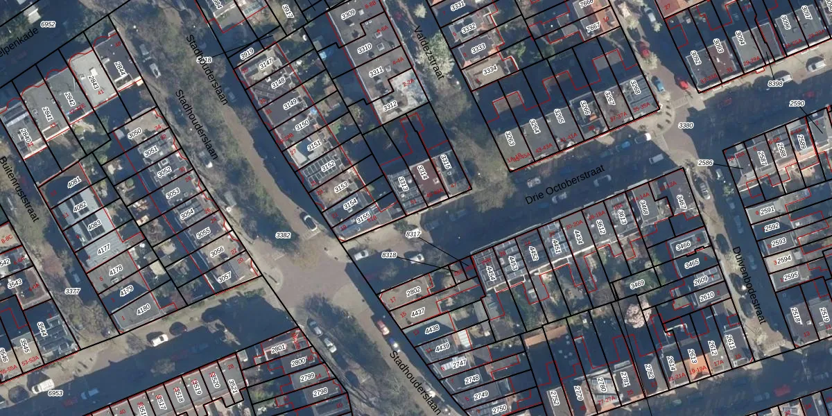 Drie Octoberstraat 51 is gelegen op kadastraal perceel LDN01M3313. Deze kadastrale aanduiding is uniek en wordt gebruikt door het Kadaster om eigendomsrechten en andere zakelijke rechten vast te leggen. Het perceel maakt onderdeel uit van de kadastrale gemeente Leiden.
