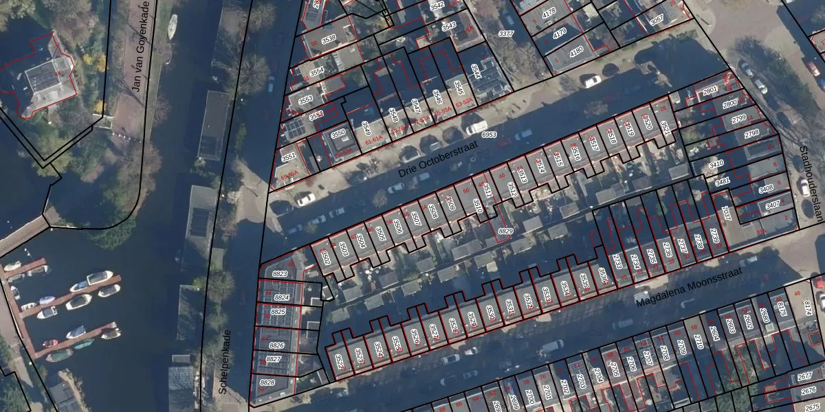 Drie Octoberstraat 56 is gelegen op kadastraal perceel LDN01M3507. Deze kadastrale aanduiding is uniek en wordt gebruikt door het Kadaster om eigendomsrechten en andere zakelijke rechten vast te leggen. Het perceel maakt onderdeel uit van de kadastrale gemeente Leiden.
