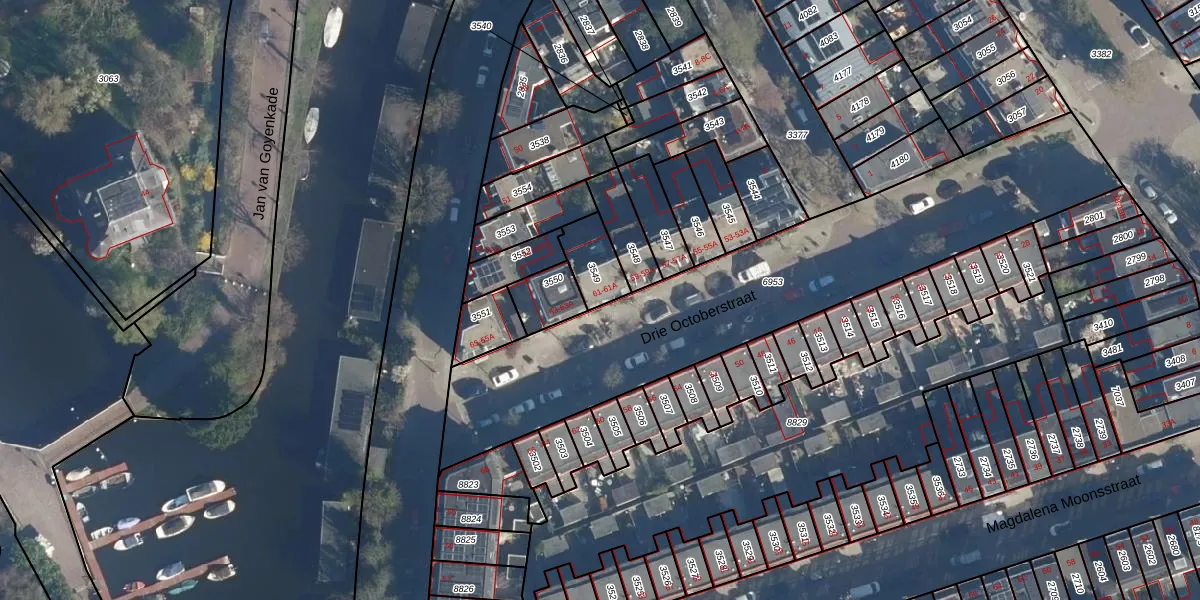 Drie Octoberstraat 61 is gelegen op kadastraal perceel LDN01M3549. Deze kadastrale aanduiding is uniek en wordt gebruikt door het Kadaster om eigendomsrechten en andere zakelijke rechten vast te leggen. Het perceel maakt onderdeel uit van de kadastrale gemeente Leiden.