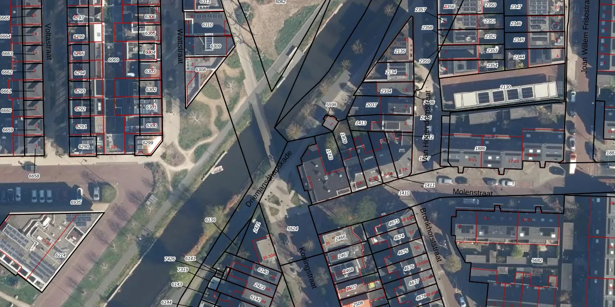 Het perceel waarop Driemanschapskade 1 staat heeft een oppervlakte van 265 m². Dit is een middelgroot perceel. De perceeloppervlakte wordt geregistreerd door het Kadaster. Gedetailleerde informatie over de maten van dit perceel kunt u vinden in het rapport Kadastrale kaart met maatvoering van Driemanschapskade 1.