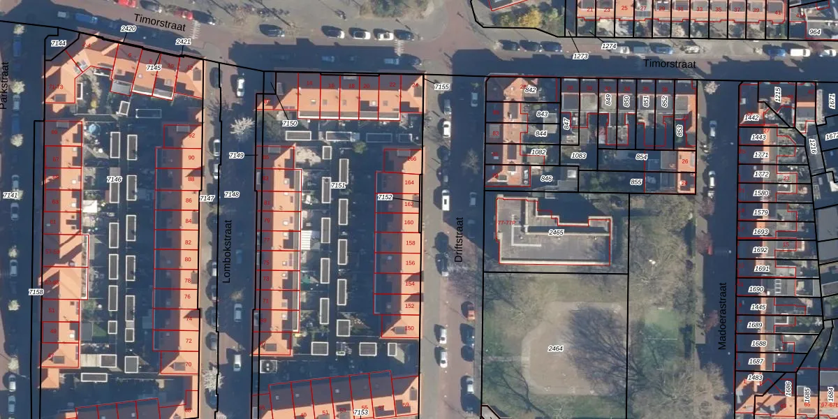 Het perceel waarop Driftstraat 162 staat heeft een oppervlakte van 3224 m². Dit is een zeer groot perceel. De perceeloppervlakte wordt geregistreerd door het Kadaster. Gedetailleerde informatie over de maten van dit perceel kunt u vinden in het rapport Kadastrale kaart met maatvoering van Driftstraat 162.
