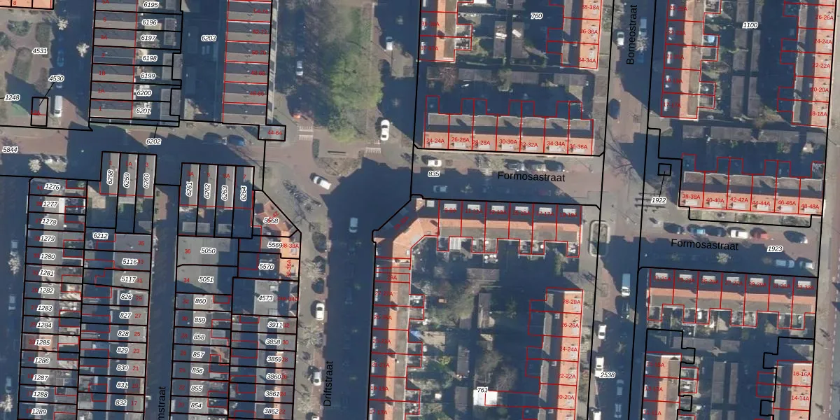 Het perceel waarop Driftstraat 33-A staat heeft een oppervlakte van 4620 m². Dit is een zeer groot perceel. De perceeloppervlakte wordt geregistreerd door het Kadaster. Gedetailleerde informatie over de maten van dit perceel kunt u vinden in het rapport Kadastrale kaart met maatvoering van Driftstraat 33-A.