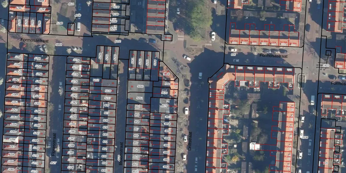 Het perceel waarop Driftstraat 38-A staat heeft een oppervlakte van 64 m². Dit is een klein perceel. De perceeloppervlakte wordt geregistreerd door het Kadaster. Gedetailleerde informatie over de maten van dit perceel kunt u vinden in het rapport Kadastrale kaart met maatvoering van Driftstraat 38-A.