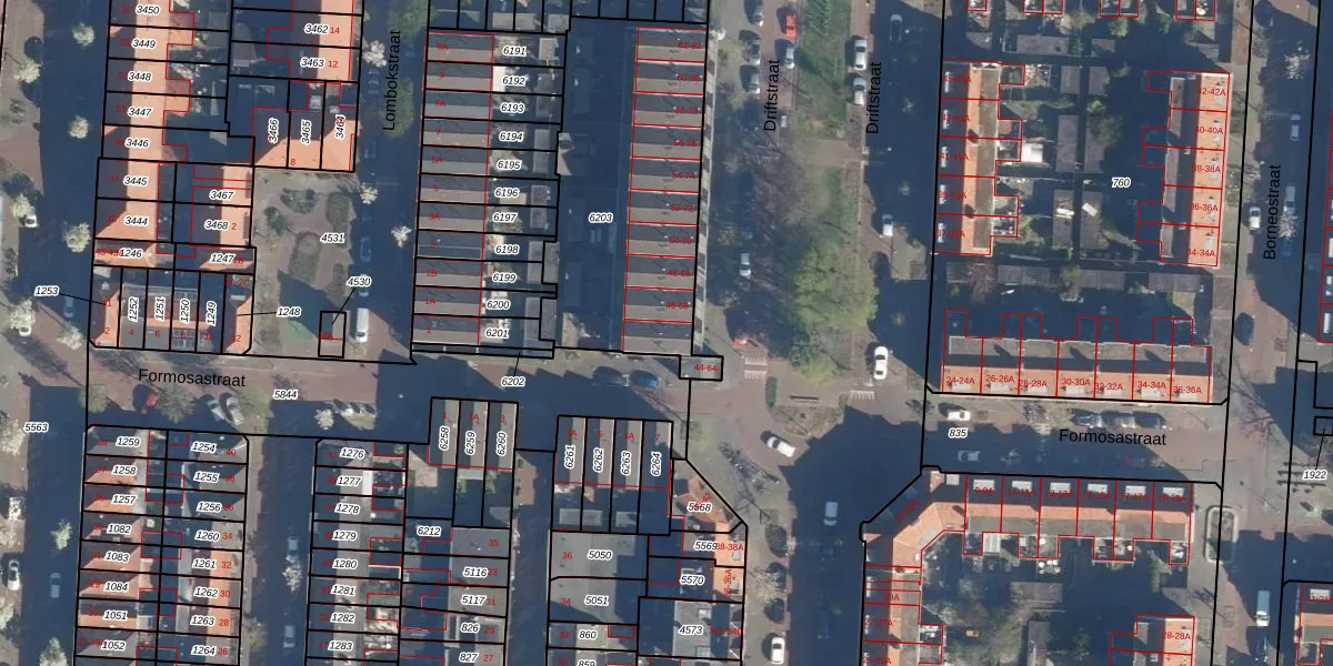 Driftstraat 44 is gelegen op kadastraal perceel LDN01K6203. Deze kadastrale aanduiding is uniek en wordt gebruikt door het Kadaster om eigendomsrechten en andere zakelijke rechten vast te leggen. Het perceel maakt onderdeel uit van de kadastrale gemeente Leiden.