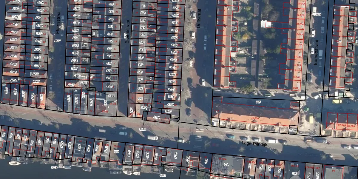 Gebruik de zoekbalk of klik op een perceel voor informatie over de adressen binnen dit perceel.