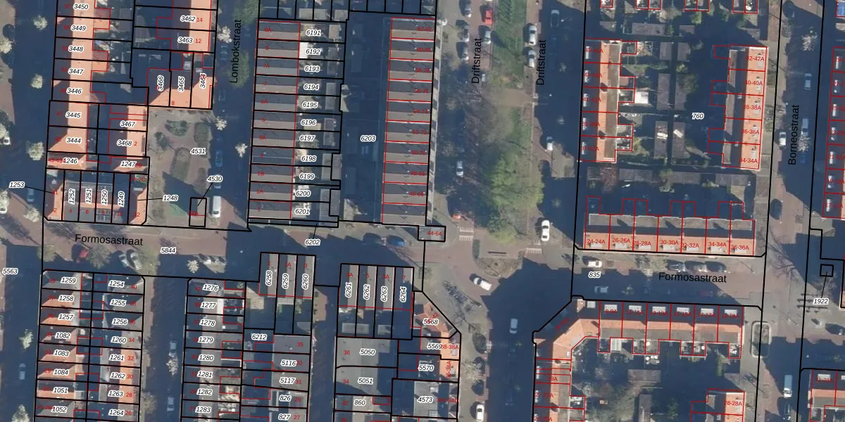 Driftstraat 64 is gelegen op kadastraal perceel LDN01K6203. Deze kadastrale aanduiding is uniek en wordt gebruikt door het Kadaster om eigendomsrechten en andere zakelijke rechten vast te leggen. Het perceel maakt onderdeel uit van de kadastrale gemeente Leiden.