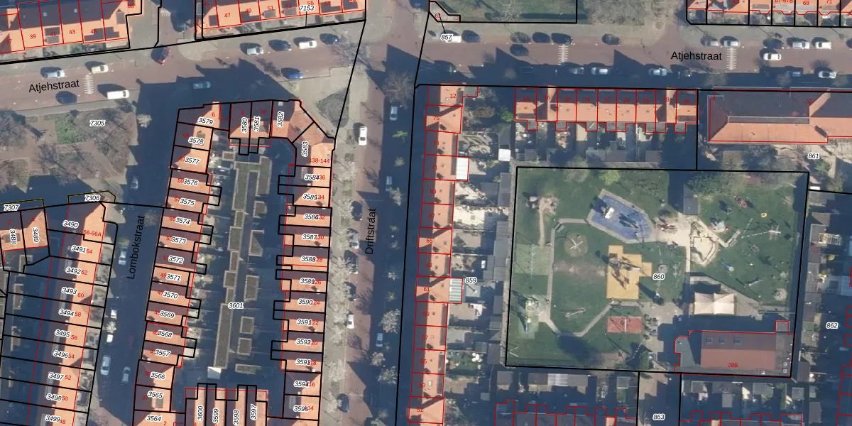 Het perceel waarop Driftstraat 67 staat heeft een oppervlakte van 3668 m². Dit is een zeer groot perceel. De perceeloppervlakte wordt geregistreerd door het Kadaster. Gedetailleerde informatie over de maten van dit perceel kunt u vinden in het rapport Kadastrale kaart met maatvoering van Driftstraat 67.