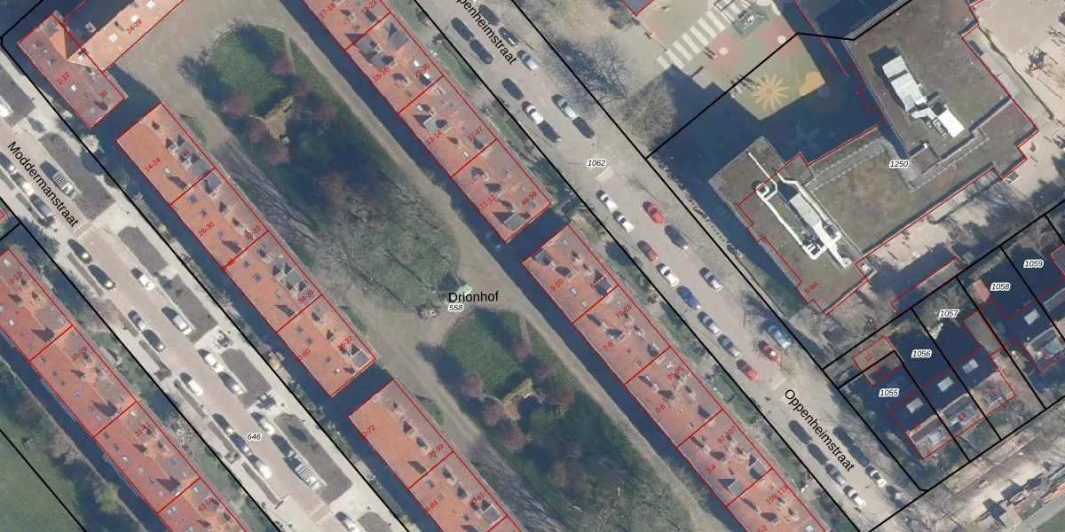 Drionhof 10 is gelegen op kadastraal perceel LDN01Q558. Deze kadastrale aanduiding is uniek en wordt gebruikt door het Kadaster om eigendomsrechten en andere zakelijke rechten vast te leggen. Het perceel maakt onderdeel uit van de kadastrale gemeente Leiden.