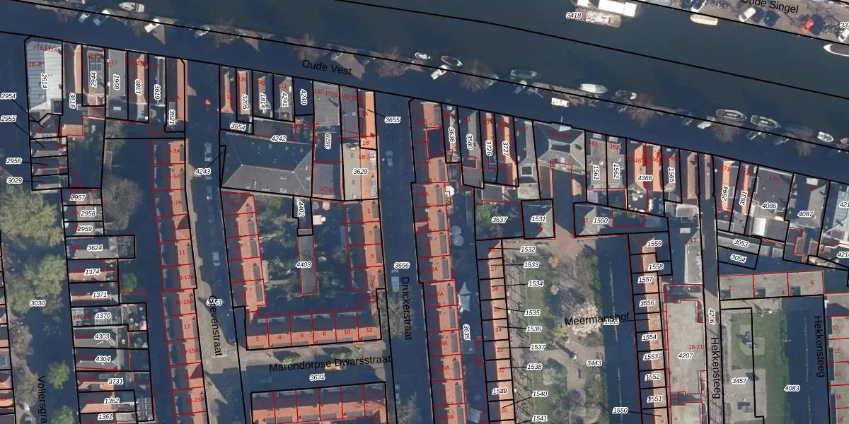 Druckerstraat 8-A is gelegen op kadastraal perceel LDN01H3635. Deze kadastrale aanduiding is uniek en wordt gebruikt door het Kadaster om eigendomsrechten en andere zakelijke rechten vast te leggen. Het perceel maakt onderdeel uit van de kadastrale gemeente Leiden.