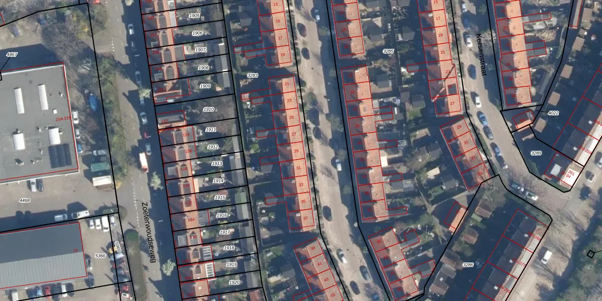 Druivenstraat 29 is gelegen op kadastraal perceel LDN01O3283. Deze kadastrale aanduiding is uniek en wordt gebruikt door het Kadaster om eigendomsrechten en andere zakelijke rechten vast te leggen. Het perceel maakt onderdeel uit van de kadastrale gemeente Leiden.