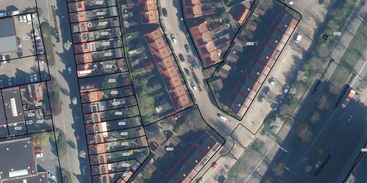 Druivenstraat 51 is gelegen op kadastraal perceel LDN01O3283. Deze kadastrale aanduiding is uniek en wordt gebruikt door het Kadaster om eigendomsrechten en andere zakelijke rechten vast te leggen. Het perceel maakt onderdeel uit van de kadastrale gemeente Leiden.