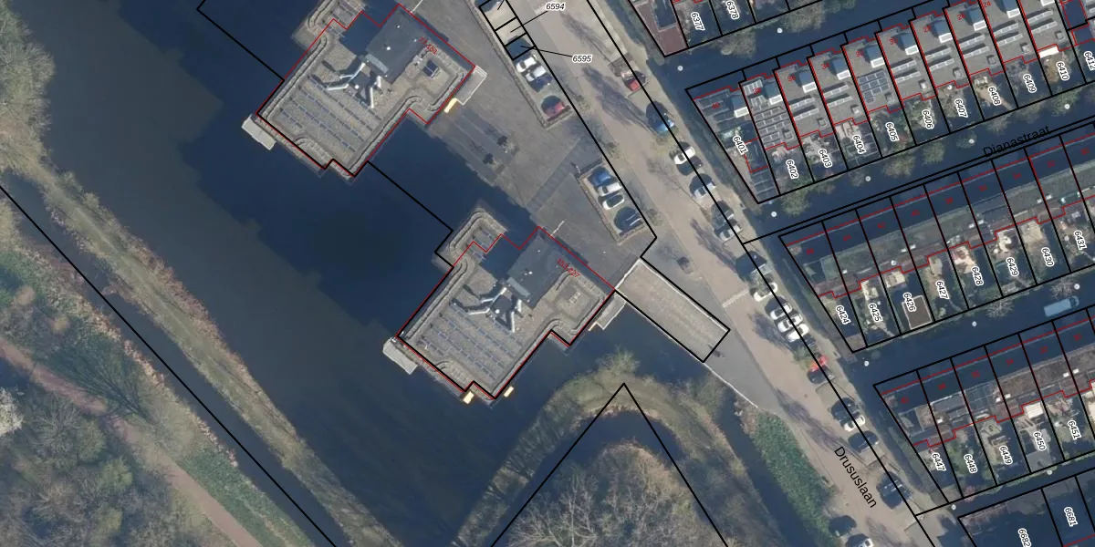 Het perceel waarop Drususlaan 169 staat heeft een oppervlakte van 5461 m². Dit is een zeer groot perceel. De perceeloppervlakte wordt geregistreerd door het Kadaster. Gedetailleerde informatie over de maten van dit perceel kunt u vinden in het rapport Kadastrale kaart met maatvoering van Drususlaan 169.
