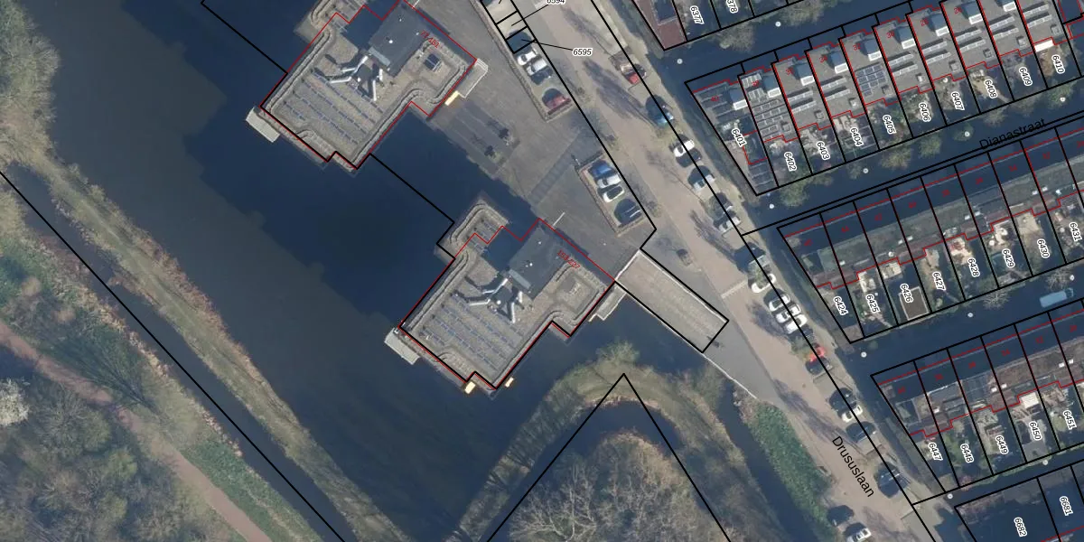 Het perceel waarop Drususlaan 177 staat heeft een oppervlakte van 5461 m². Dit is een zeer groot perceel. De perceeloppervlakte wordt geregistreerd door het Kadaster. Gedetailleerde informatie over de maten van dit perceel kunt u vinden in het rapport Kadastrale kaart met maatvoering van Drususlaan 177.