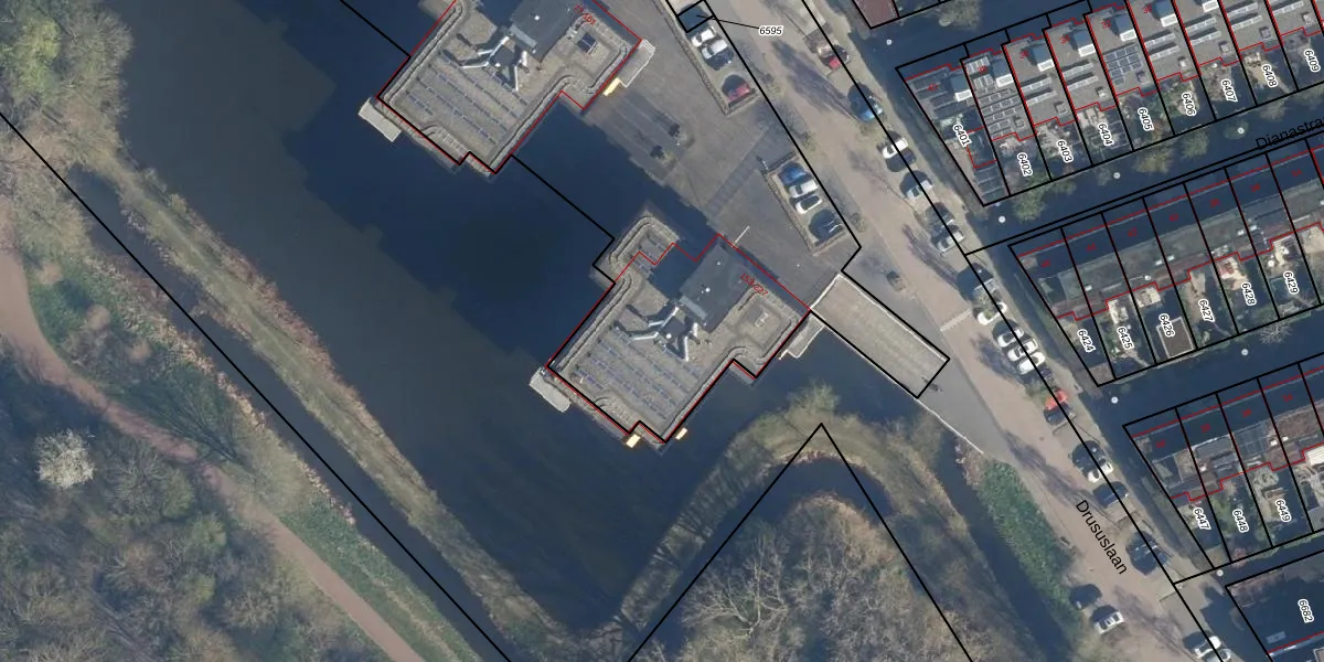 Het perceel waarop Drususlaan 219 staat heeft een oppervlakte van 5461 m². Dit is een zeer groot perceel. De perceeloppervlakte wordt geregistreerd door het Kadaster. Gedetailleerde informatie over de maten van dit perceel kunt u vinden in het rapport Kadastrale kaart met maatvoering van Drususlaan 219.