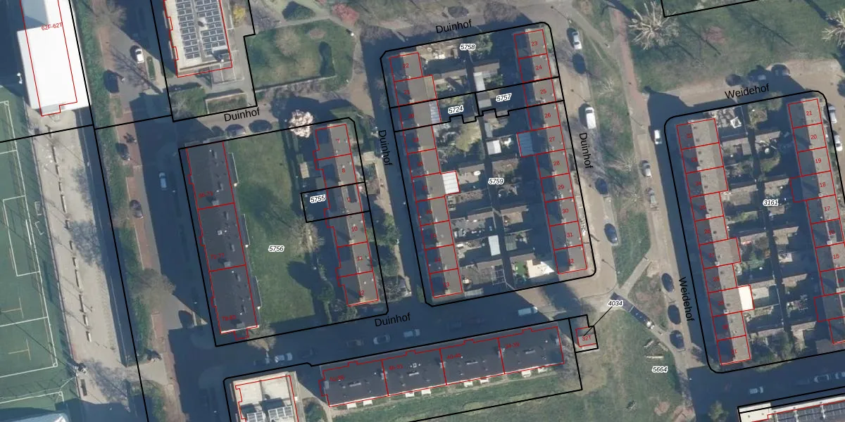 Duinhof 16 is gelegen op kadastraal perceel LDN01O5759. Deze kadastrale aanduiding is uniek en wordt gebruikt door het Kadaster om eigendomsrechten en andere zakelijke rechten vast te leggen. Het perceel maakt onderdeel uit van de kadastrale gemeente Leiden.