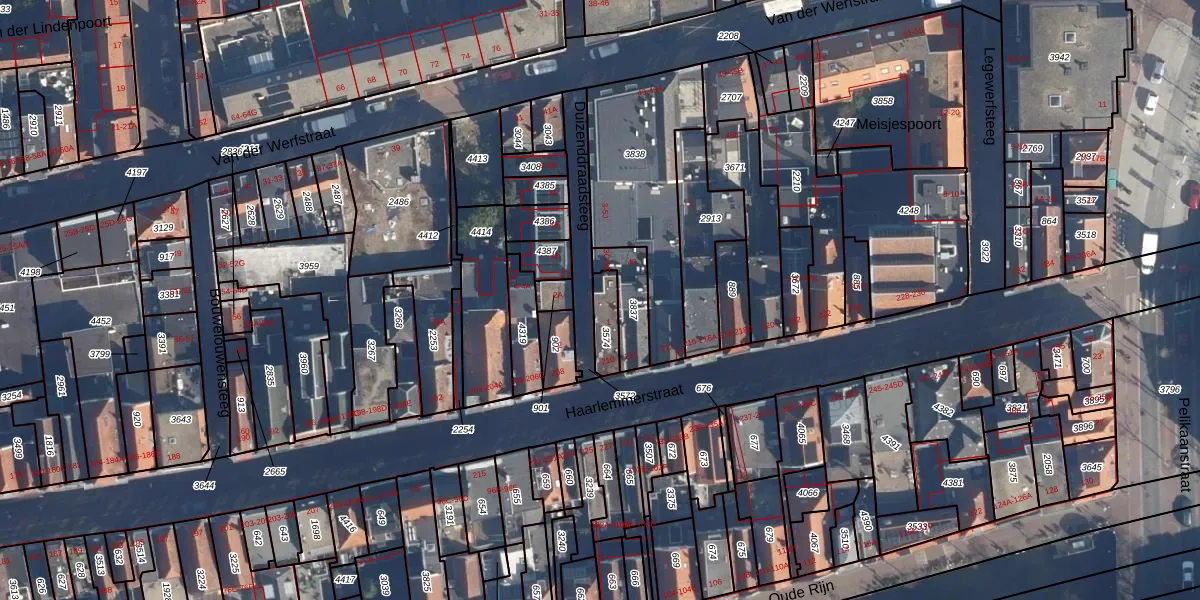 Duizenddraadsteeg 1 is gelegen op kadastraal perceel LDN01H3574. Deze kadastrale aanduiding is uniek en wordt gebruikt door het Kadaster om eigendomsrechten en andere zakelijke rechten vast te leggen. Het perceel maakt onderdeel uit van de kadastrale gemeente Leiden.