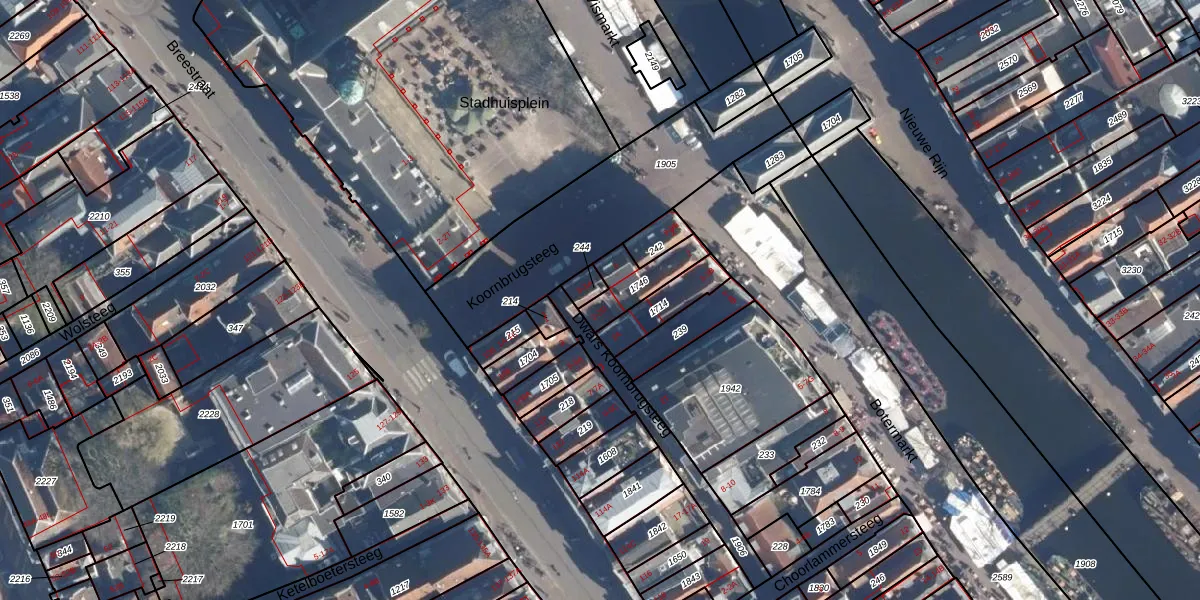 Dwars Koornbrugsteeg 2-C is gelegen op kadastraal perceel LDN01G1746. Deze kadastrale aanduiding is uniek en wordt gebruikt door het Kadaster om eigendomsrechten en andere zakelijke rechten vast te leggen. Het perceel maakt onderdeel uit van de kadastrale gemeente Leiden.