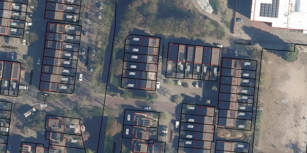 Dwergwier 4 is gelegen op kadastraal perceel LDN01S4624. Deze kadastrale aanduiding is uniek en wordt gebruikt door het Kadaster om eigendomsrechten en andere zakelijke rechten vast te leggen. Het perceel maakt onderdeel uit van de kadastrale gemeente Leiden.