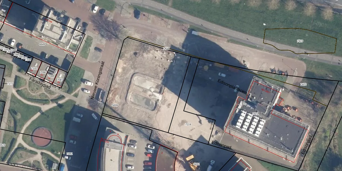 Het perceel waarop Edisonplantsoen 107 staat heeft een oppervlakte van 1861 m². Dit is een zeer groot perceel. De perceeloppervlakte wordt geregistreerd door het Kadaster. Gedetailleerde informatie over de maten van dit perceel kunt u vinden in het rapport Kadastrale kaart met maatvoering van Edisonplantsoen 107.