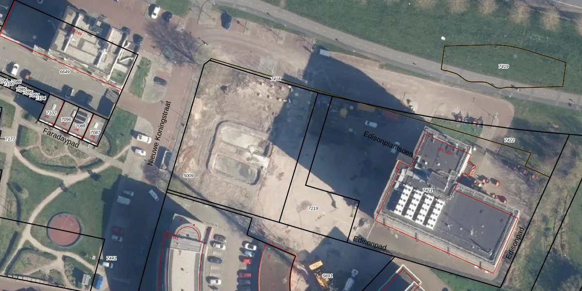 Het perceel waarop Edisonplantsoen 109 staat heeft een oppervlakte van 1861 m². Dit is een zeer groot perceel. De perceeloppervlakte wordt geregistreerd door het Kadaster. Gedetailleerde informatie over de maten van dit perceel kunt u vinden in het rapport Kadastrale kaart met maatvoering van Edisonplantsoen 109.