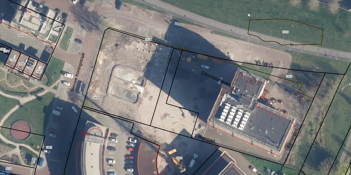 Het perceel waarop Edisonplantsoen 117 staat heeft een oppervlakte van 3315 m². Dit is een zeer groot perceel. De perceeloppervlakte wordt geregistreerd door het Kadaster. Gedetailleerde informatie over de maten van dit perceel kunt u vinden in het rapport Kadastrale kaart met maatvoering van Edisonplantsoen 117.