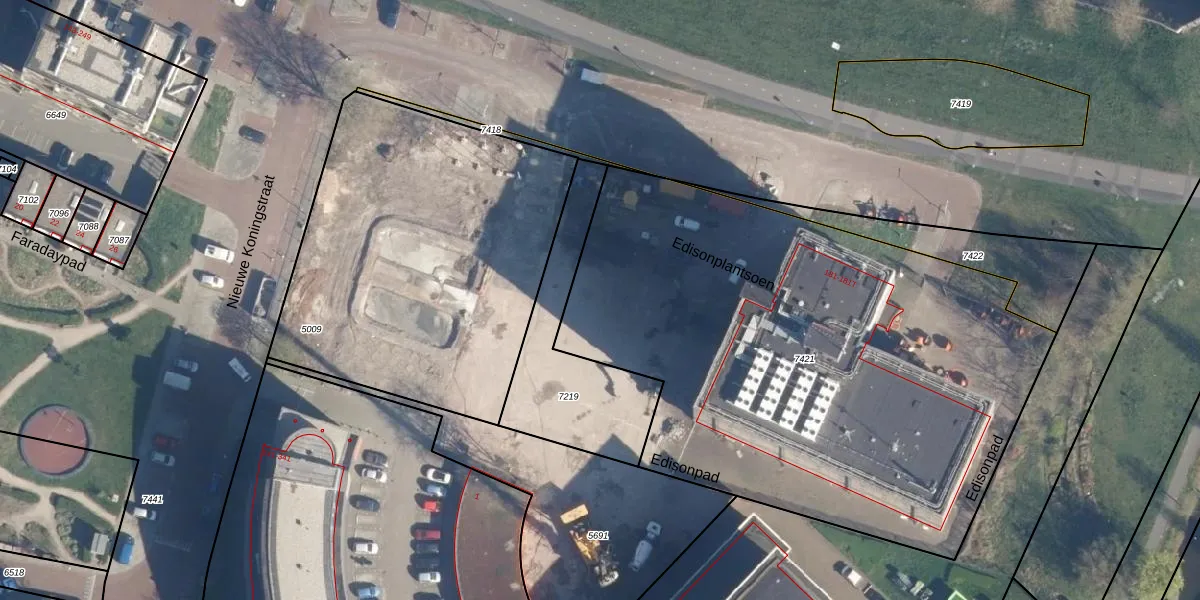 Het perceel waarop Edisonplantsoen 119 staat heeft een oppervlakte van 3315 m². Dit is een zeer groot perceel. De perceeloppervlakte wordt geregistreerd door het Kadaster. Gedetailleerde informatie over de maten van dit perceel kunt u vinden in het rapport Kadastrale kaart met maatvoering van Edisonplantsoen 119.