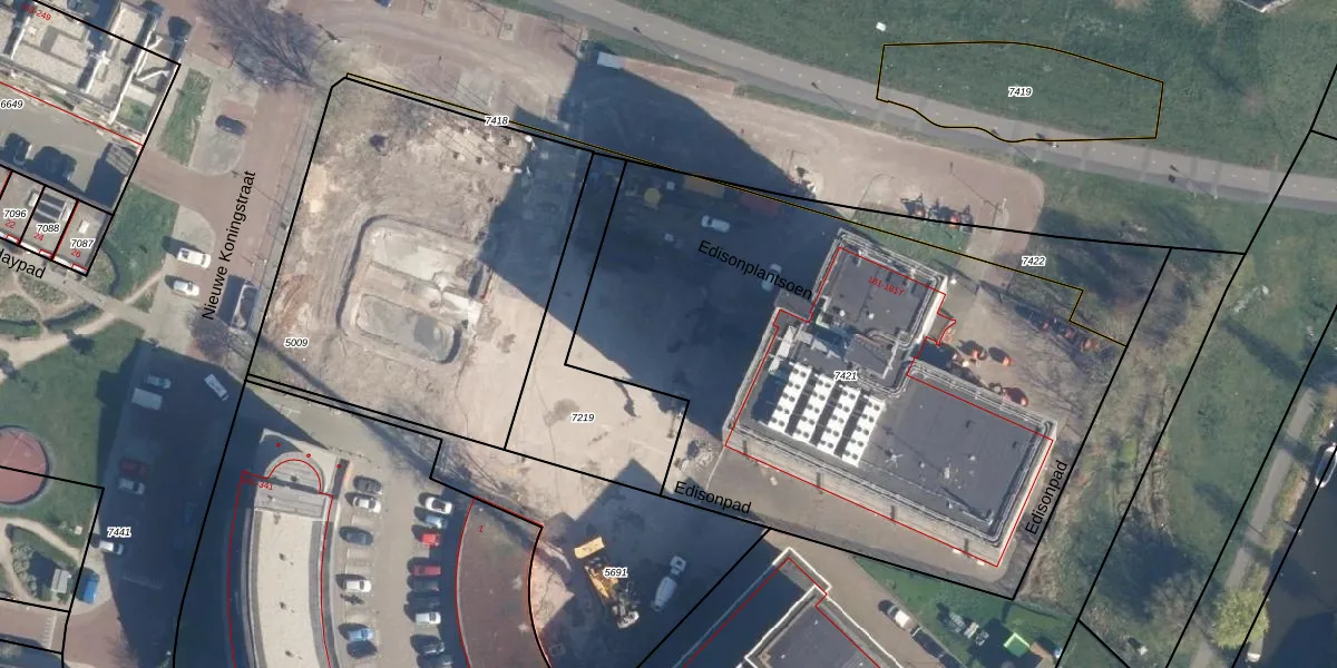 Het perceel waarop Edisonplantsoen 125 staat heeft een oppervlakte van 3315 m². Dit is een zeer groot perceel. De perceeloppervlakte wordt geregistreerd door het Kadaster. Gedetailleerde informatie over de maten van dit perceel kunt u vinden in het rapport Kadastrale kaart met maatvoering van Edisonplantsoen 125.