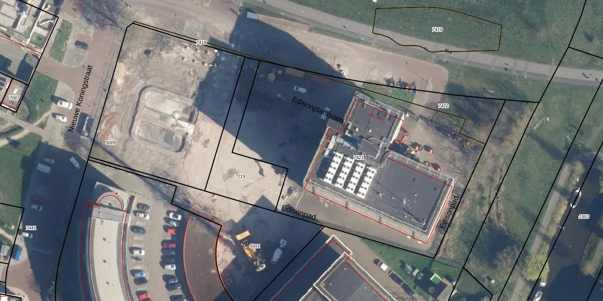 Het perceel waarop Edisonplantsoen 131 staat heeft een oppervlakte van 3315 m². Dit is een zeer groot perceel. De perceeloppervlakte wordt geregistreerd door het Kadaster. Gedetailleerde informatie over de maten van dit perceel kunt u vinden in het rapport Kadastrale kaart met maatvoering van Edisonplantsoen 131.