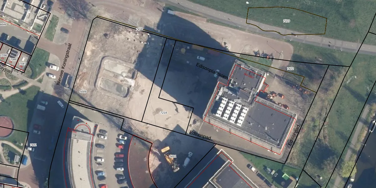 Het perceel waarop Edisonplantsoen 143 staat heeft een oppervlakte van 3315 m². Dit is een zeer groot perceel. De perceeloppervlakte wordt geregistreerd door het Kadaster. Gedetailleerde informatie over de maten van dit perceel kunt u vinden in het rapport Kadastrale kaart met maatvoering van Edisonplantsoen 143.