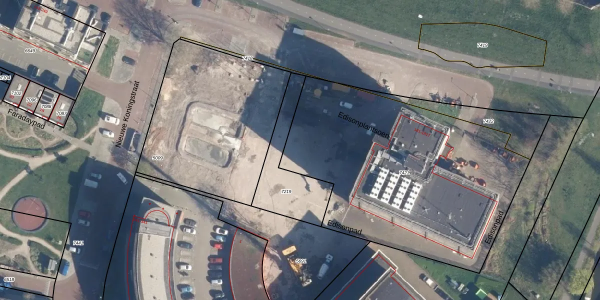 Het perceel waarop Edisonplantsoen 151 staat heeft een oppervlakte van 3315 m². Dit is een zeer groot perceel. De perceeloppervlakte wordt geregistreerd door het Kadaster. Gedetailleerde informatie over de maten van dit perceel kunt u vinden in het rapport Kadastrale kaart met maatvoering van Edisonplantsoen 151.