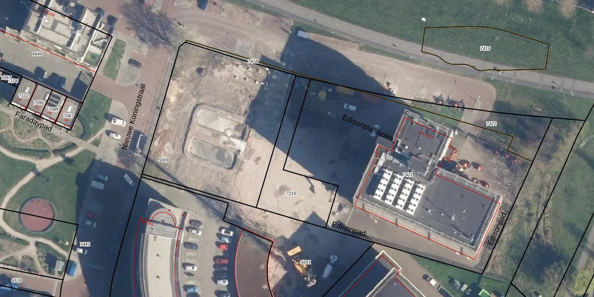 Het perceel waarop Edisonplantsoen 153 staat heeft een oppervlakte van 3315 m². Dit is een zeer groot perceel. De perceeloppervlakte wordt geregistreerd door het Kadaster. Gedetailleerde informatie over de maten van dit perceel kunt u vinden in het rapport Kadastrale kaart met maatvoering van Edisonplantsoen 153.