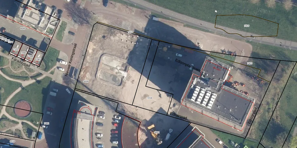 Het perceel waarop Edisonplantsoen 155 staat heeft een oppervlakte van 520 m². Dit is een groot perceel. De perceeloppervlakte wordt geregistreerd door het Kadaster. Gedetailleerde informatie over de maten van dit perceel kunt u vinden in het rapport Kadastrale kaart met maatvoering van Edisonplantsoen 155.