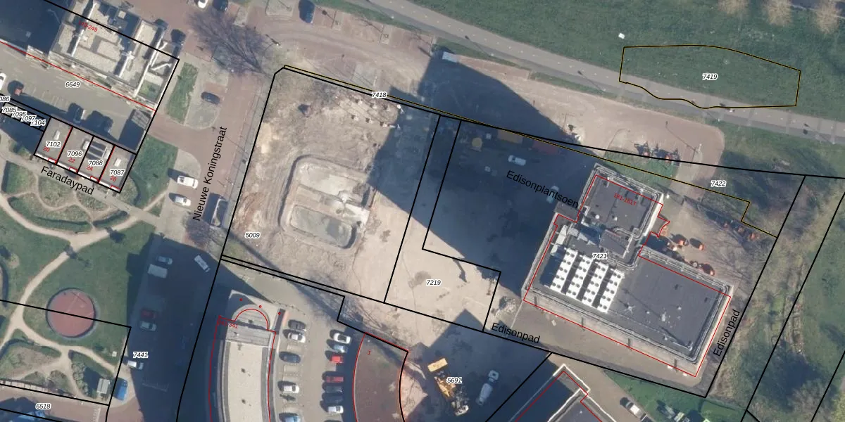 Het perceel waarop Edisonplantsoen 157 staat heeft een oppervlakte van 520 m². Dit is een groot perceel. De perceeloppervlakte wordt geregistreerd door het Kadaster. Gedetailleerde informatie over de maten van dit perceel kunt u vinden in het rapport Kadastrale kaart met maatvoering van Edisonplantsoen 157.