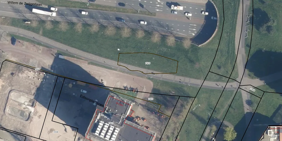 Het perceel waarop Edisonplantsoen 184 staat heeft een oppervlakte van 496 m². Dit is een groot perceel. De perceeloppervlakte wordt geregistreerd door het Kadaster. Gedetailleerde informatie over de maten van dit perceel kunt u vinden in het rapport Kadastrale kaart met maatvoering van Edisonplantsoen 184.