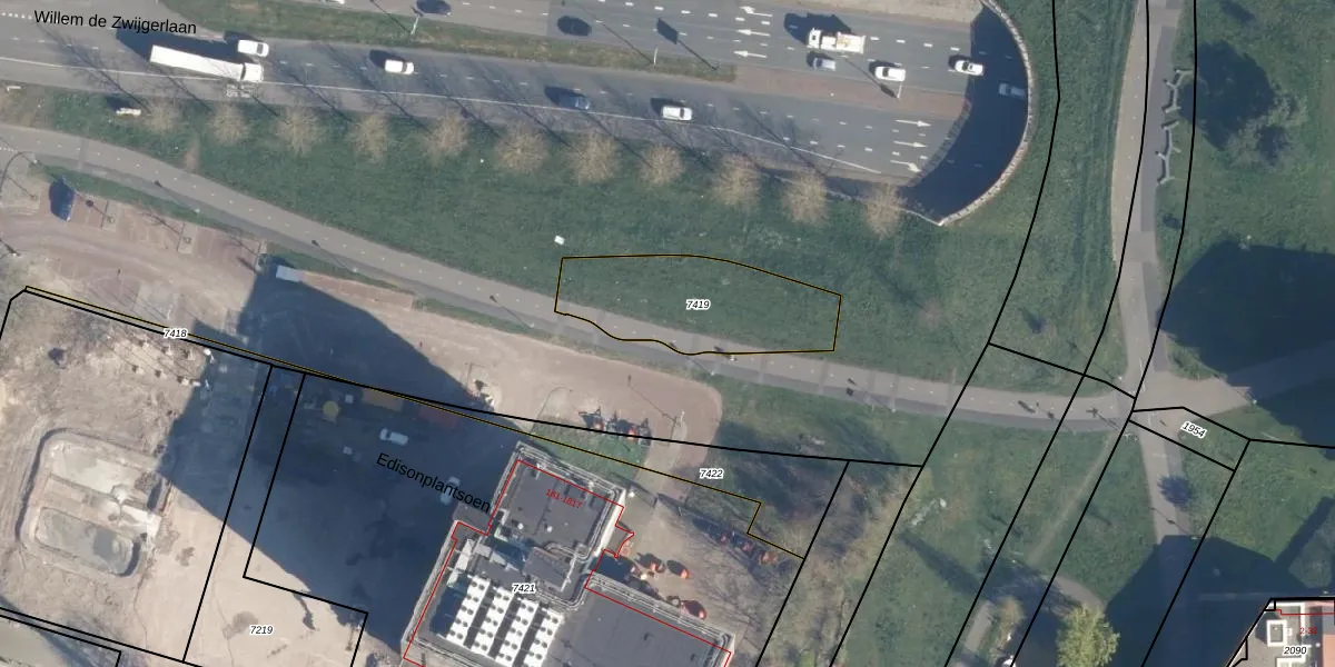 Het perceel waarop Edisonplantsoen 186 staat heeft een oppervlakte van 496 m². Dit is een groot perceel. De perceeloppervlakte wordt geregistreerd door het Kadaster. Gedetailleerde informatie over de maten van dit perceel kunt u vinden in het rapport Kadastrale kaart met maatvoering van Edisonplantsoen 186.