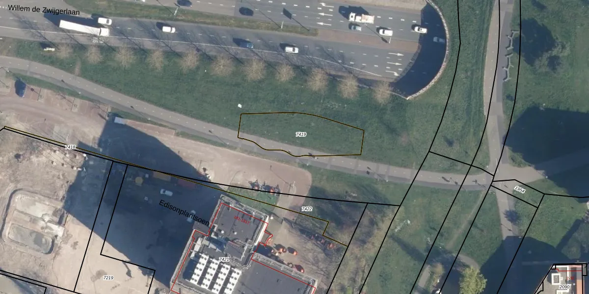 Het perceel waarop Edisonplantsoen 250 staat heeft een oppervlakte van 496 m². Dit is een groot perceel. De perceeloppervlakte wordt geregistreerd door het Kadaster. Gedetailleerde informatie over de maten van dit perceel kunt u vinden in het rapport Kadastrale kaart met maatvoering van Edisonplantsoen 250.
