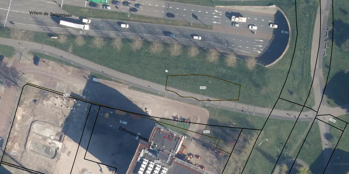 Het perceel waarop Edisonplantsoen 26 staat heeft een oppervlakte van 496 m². Dit is een groot perceel. De perceeloppervlakte wordt geregistreerd door het Kadaster. Gedetailleerde informatie over de maten van dit perceel kunt u vinden in het rapport Kadastrale kaart met maatvoering van Edisonplantsoen 26.