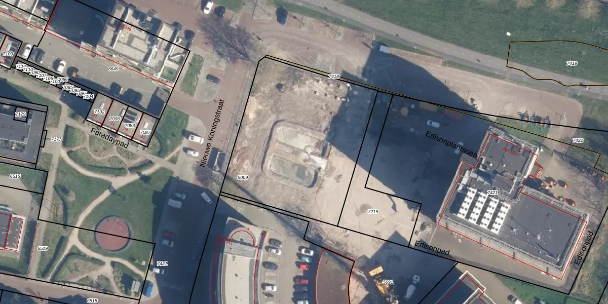 Het perceel waarop Edisonplantsoen 281 staat heeft een oppervlakte van 1861 m². Dit is een zeer groot perceel. De perceeloppervlakte wordt geregistreerd door het Kadaster. Gedetailleerde informatie over de maten van dit perceel kunt u vinden in het rapport Kadastrale kaart met maatvoering van Edisonplantsoen 281.
