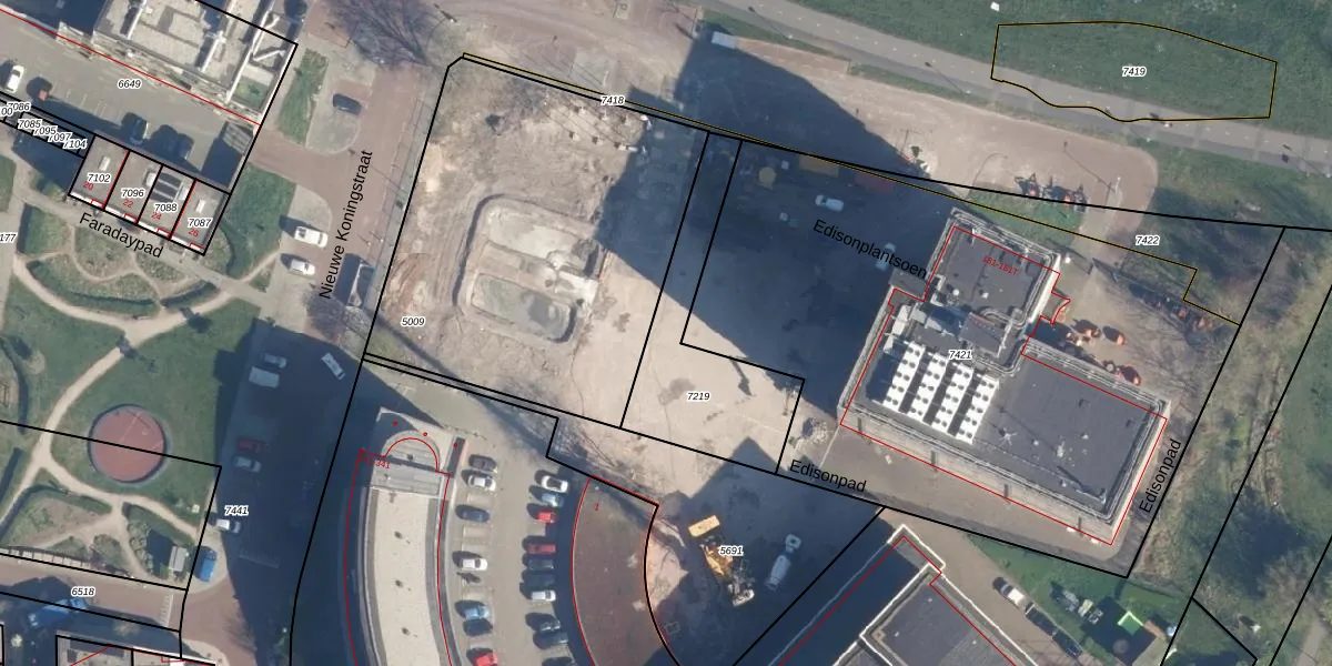 Het perceel waarop Edisonplantsoen 329 staat heeft een oppervlakte van 520 m². Dit is een groot perceel. De perceeloppervlakte wordt geregistreerd door het Kadaster. Gedetailleerde informatie over de maten van dit perceel kunt u vinden in het rapport Kadastrale kaart met maatvoering van Edisonplantsoen 329.