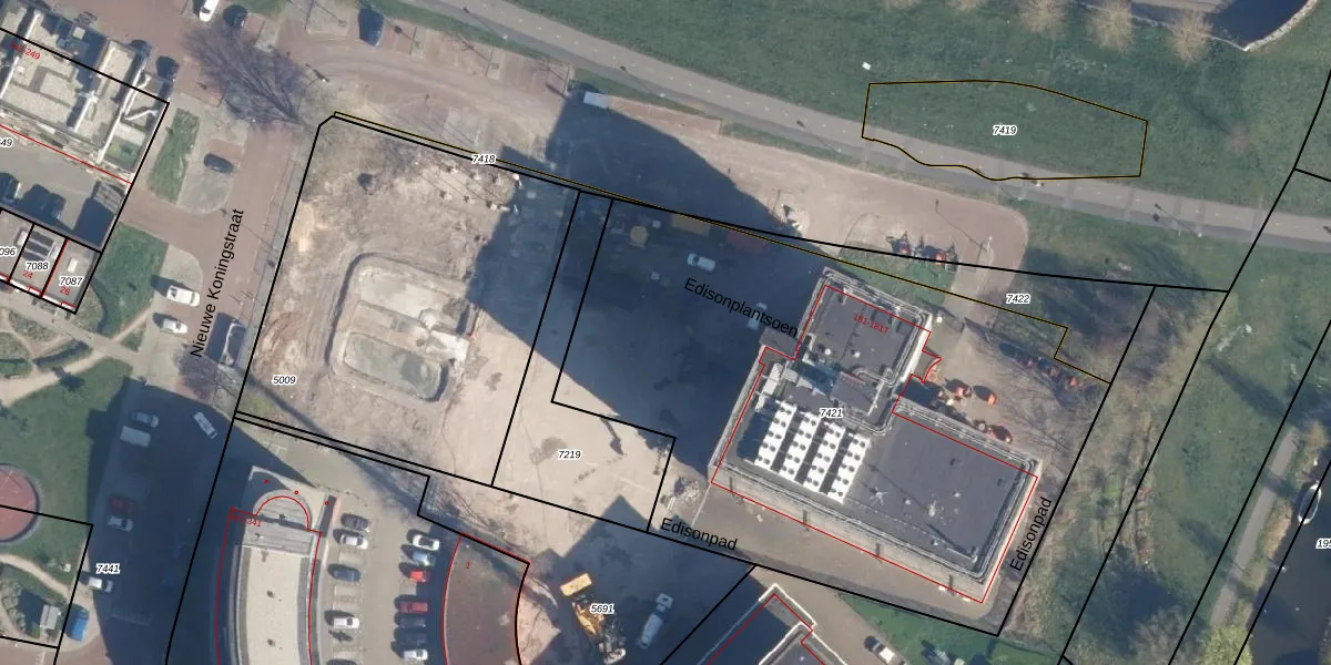 Het perceel waarop Edisonplantsoen 33 staat heeft een oppervlakte van 3315 m². Dit is een zeer groot perceel. De perceeloppervlakte wordt geregistreerd door het Kadaster. Gedetailleerde informatie over de maten van dit perceel kunt u vinden in het rapport Kadastrale kaart met maatvoering van Edisonplantsoen 33.