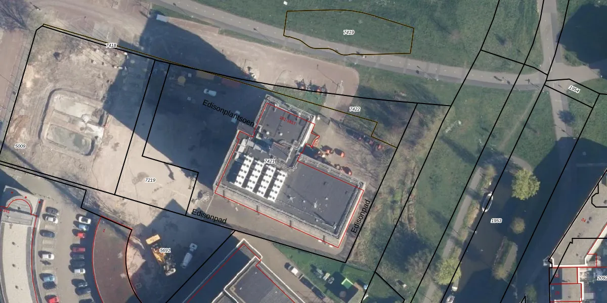 Het perceel waarop Edisonplantsoen 381 staat heeft een oppervlakte van 3315 m². Dit is een zeer groot perceel. De perceeloppervlakte wordt geregistreerd door het Kadaster. Gedetailleerde informatie over de maten van dit perceel kunt u vinden in het rapport Kadastrale kaart met maatvoering van Edisonplantsoen 381.