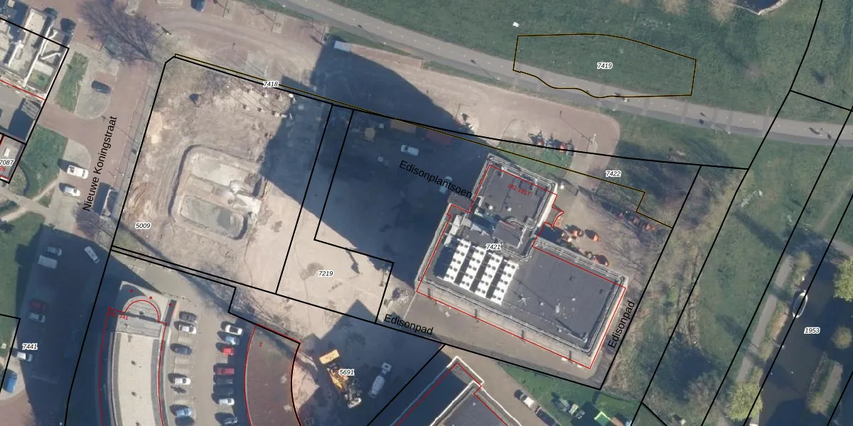 Het perceel waarop Edisonplantsoen 39 staat heeft een oppervlakte van 3315 m². Dit is een zeer groot perceel. De perceeloppervlakte wordt geregistreerd door het Kadaster. Gedetailleerde informatie over de maten van dit perceel kunt u vinden in het rapport Kadastrale kaart met maatvoering van Edisonplantsoen 39.