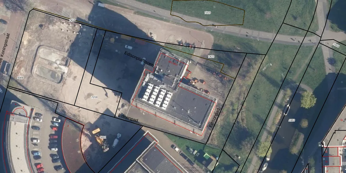 Het perceel waarop Edisonplantsoen 419 staat heeft een oppervlakte van 3315 m². Dit is een zeer groot perceel. De perceeloppervlakte wordt geregistreerd door het Kadaster. Gedetailleerde informatie over de maten van dit perceel kunt u vinden in het rapport Kadastrale kaart met maatvoering van Edisonplantsoen 419.
