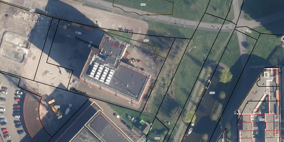 Het perceel waarop Edisonplantsoen 479 staat heeft een oppervlakte van 3315 m². Dit is een zeer groot perceel. De perceeloppervlakte wordt geregistreerd door het Kadaster. Gedetailleerde informatie over de maten van dit perceel kunt u vinden in het rapport Kadastrale kaart met maatvoering van Edisonplantsoen 479.