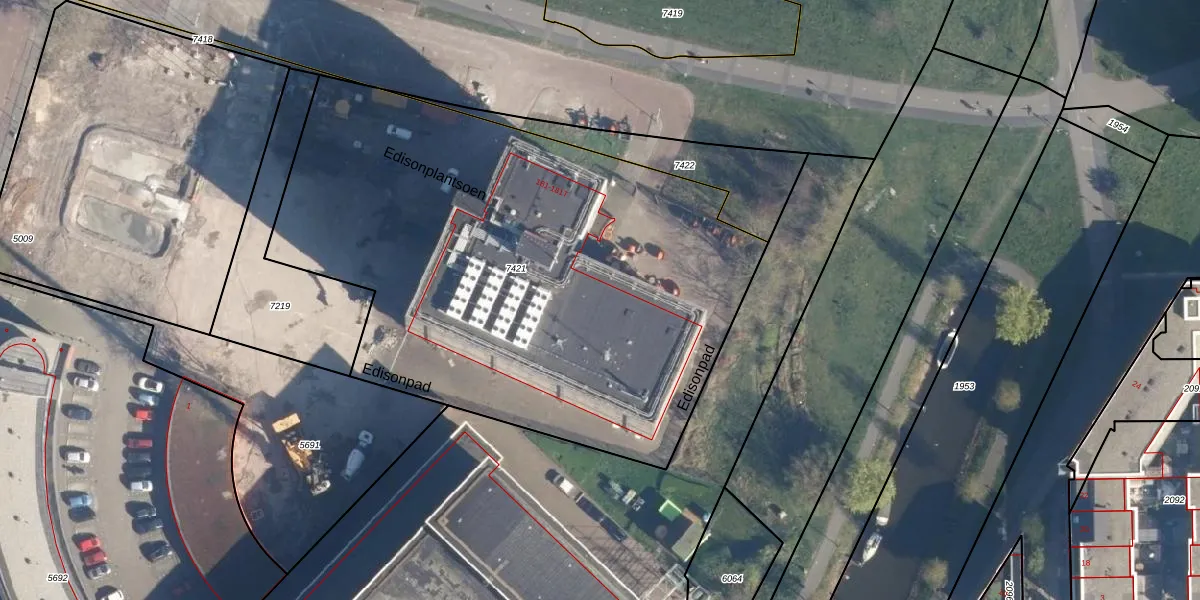 Het perceel waarop Edisonplantsoen 487 staat heeft een oppervlakte van 3315 m². Dit is een zeer groot perceel. De perceeloppervlakte wordt geregistreerd door het Kadaster. Gedetailleerde informatie over de maten van dit perceel kunt u vinden in het rapport Kadastrale kaart met maatvoering van Edisonplantsoen 487.