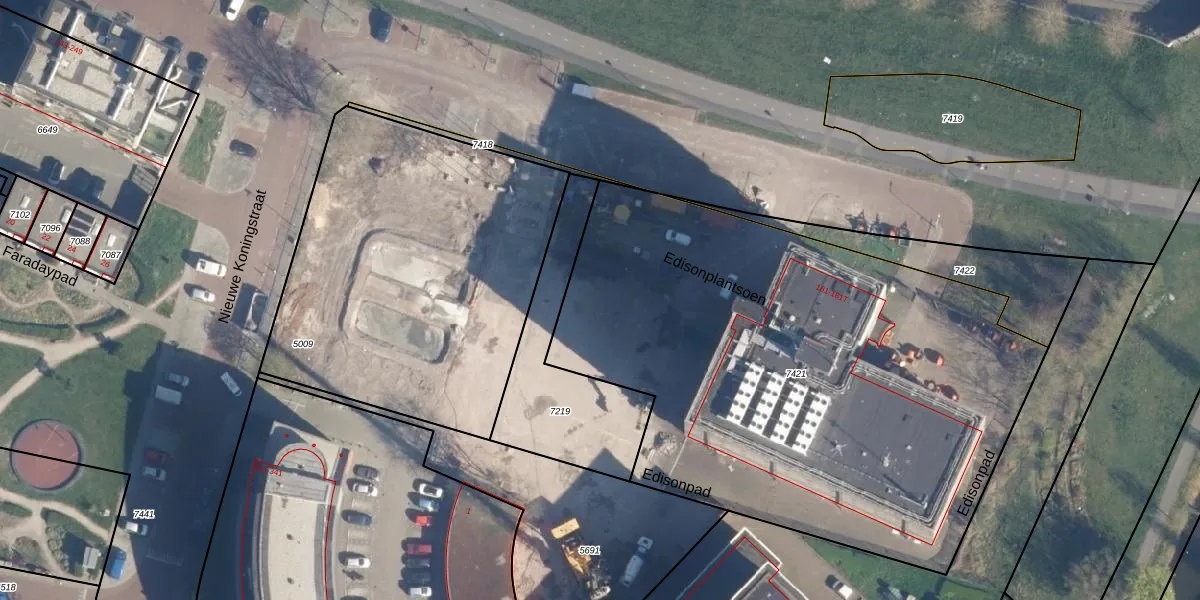 Het perceel waarop Edisonplantsoen 53 staat heeft een oppervlakte van 3315 m². Dit is een zeer groot perceel. De perceeloppervlakte wordt geregistreerd door het Kadaster. Gedetailleerde informatie over de maten van dit perceel kunt u vinden in het rapport Kadastrale kaart met maatvoering van Edisonplantsoen 53.