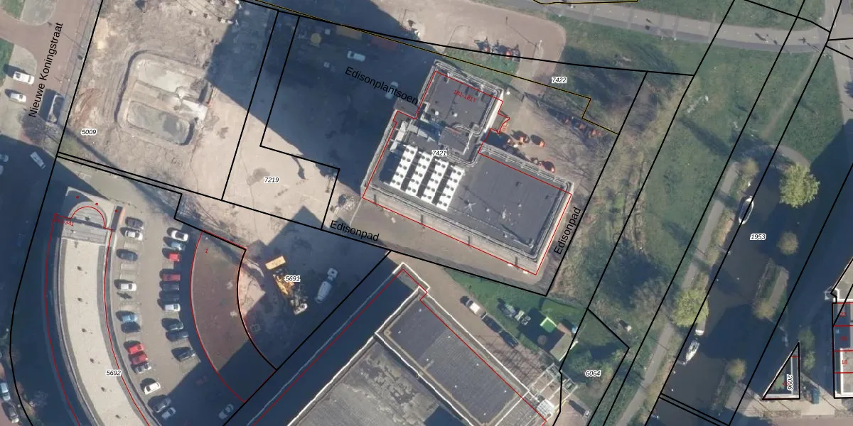 Het perceel waarop Edisonplantsoen 617 staat heeft een oppervlakte van 3315 m². Dit is een zeer groot perceel. De perceeloppervlakte wordt geregistreerd door het Kadaster. Gedetailleerde informatie over de maten van dit perceel kunt u vinden in het rapport Kadastrale kaart met maatvoering van Edisonplantsoen 617.