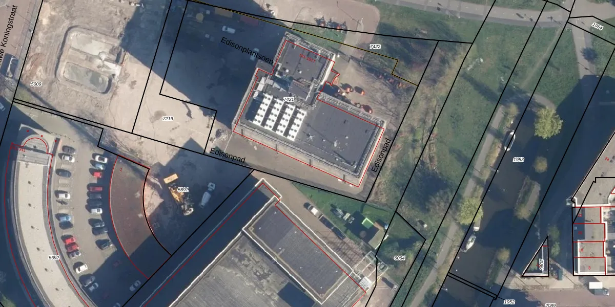 Het perceel waarop Edisonplantsoen 709 staat heeft een oppervlakte van 3315 m². Dit is een zeer groot perceel. De perceeloppervlakte wordt geregistreerd door het Kadaster. Gedetailleerde informatie over de maten van dit perceel kunt u vinden in het rapport Kadastrale kaart met maatvoering van Edisonplantsoen 709.